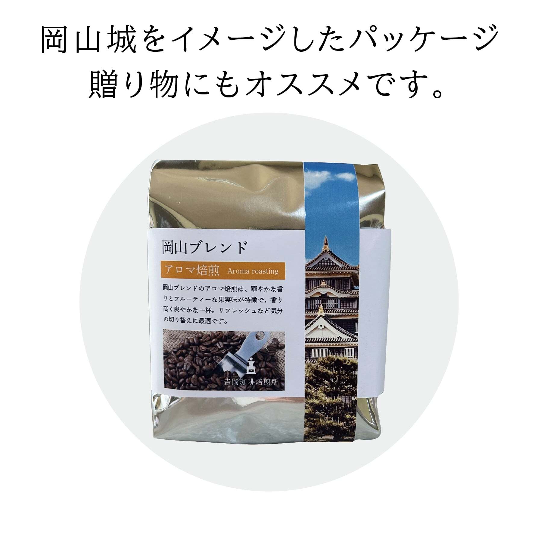 岡山ブレンドのアロマ焙煎とマイルド焙煎のセット販売は、岡山をイメージした香りと味わいのバランスを楽しむ珈琲です。